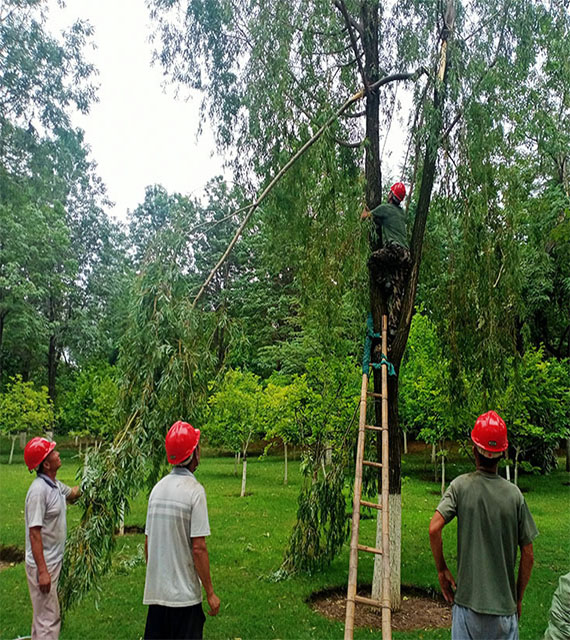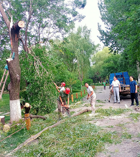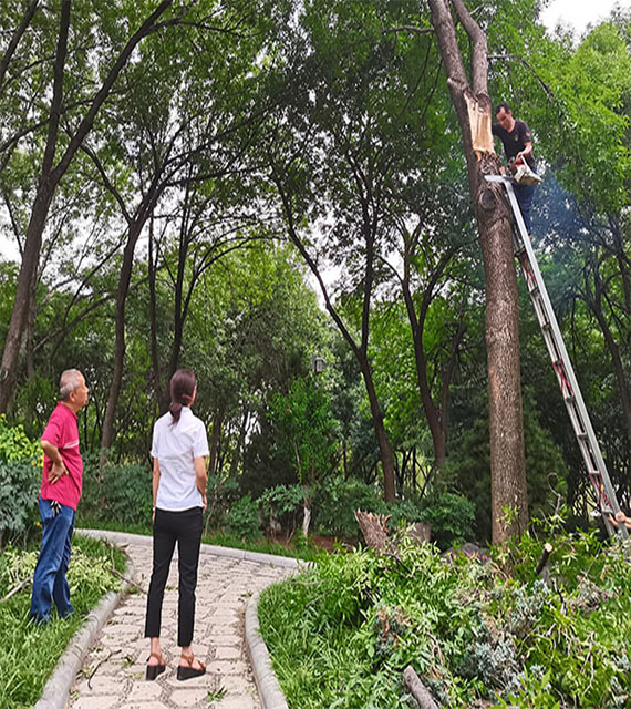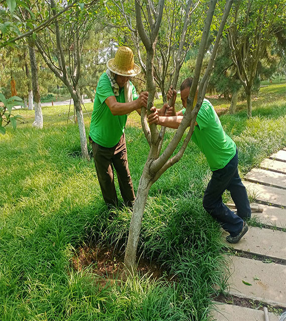 扶正倒伏苗木 清理树木断枝:近日,受恶劣天气的影响,个别项目出现苗木倒伏及断枝的情况,百合园林集团绿化养护管理人员对相关项目倒伏苗木及时进行扶正并清理断枝,营造了一个良好的自然环境,同时也消除了安全隐患。
